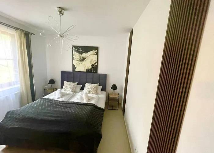Az aquaparkhoz, napozó dekkhez és napozóteraszhoz rendelkező "Apartament Pod Sniezka" Uroczy Apartament Z Kominkiem apartman 2 km-re van az Alpine Coaster bobpálya térségétől. Az ingatlan körülbelül egy 20 perces sétára található Karpacz központjától.